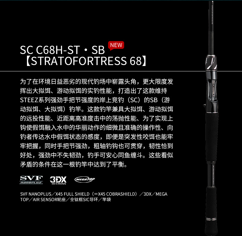 削减更多的树脂含量,相对应的加入了大量的石墨纤维,从而实现了强韧肉厚的竿身素材