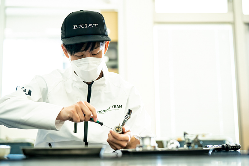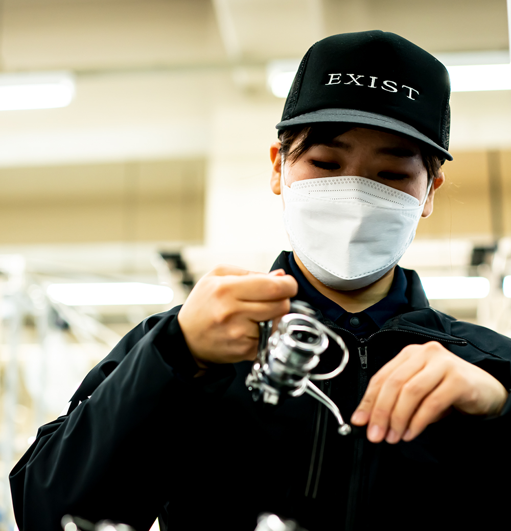 EXIST专职的熟练员工们,把通过达亿瓦新技术制作出来的高精度的零件一个一个认真地组装起来。经过工厂中也罕见的EXIST特别认证检查人员,从间隙、渔轮操作时发出的声音到外观,严格、程序完整地检查完毕的产品,才会和出厂检验合格证书(品质保证书)一起到达顾客的手里。