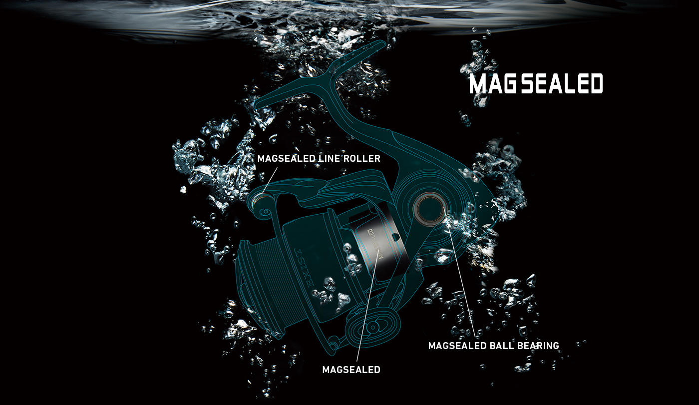 鱼线轮防水、耐久技术,磁油防水技术。磁油防水技术是达亿瓦的创新技术,在转动部位注入一层带磁性的油膜(磁油),阻隔海水渗入内部。