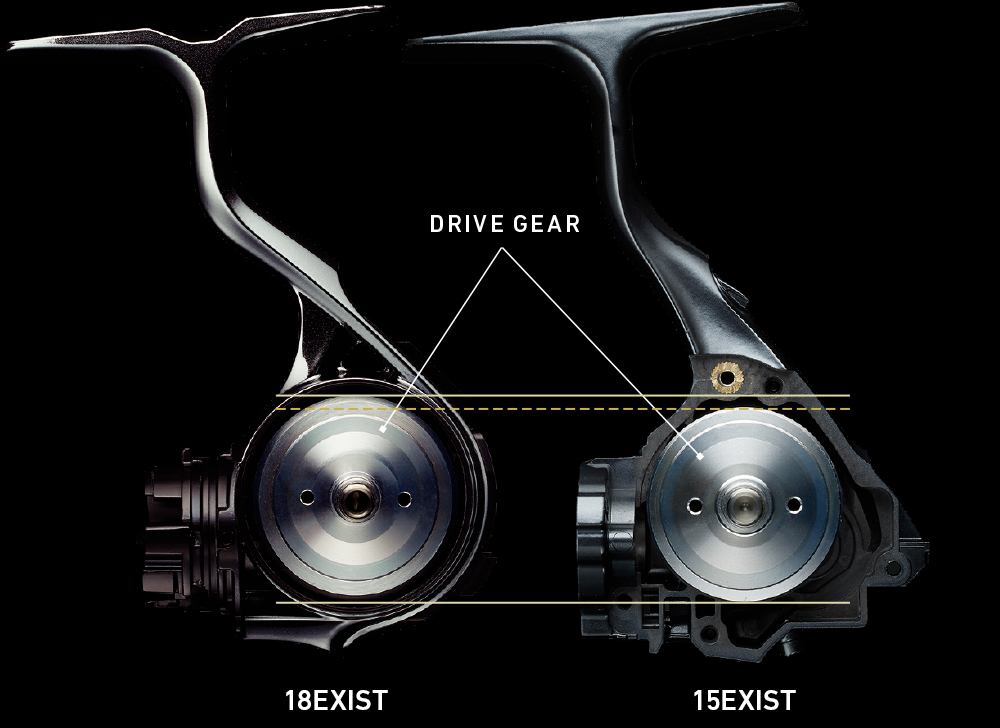 与18EXIST一样,22EXIST也采用由镁素材制成的单壳式机身。机身轻盈紧凑。然而,当收线时,大口径的驱动齿轮便会产生令人瞠目结舌的动力和扭矩。单壳式机身带来的好处,比你想象的还要大。