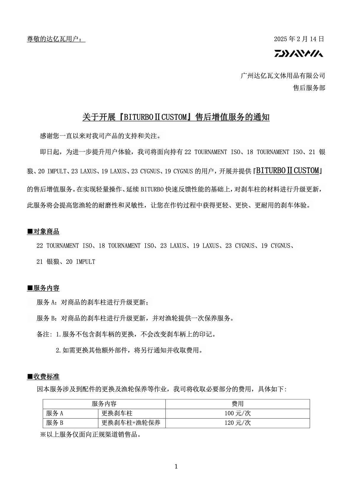 关于开展『BITURBOⅡCUSTOM』售后增值服务的通知