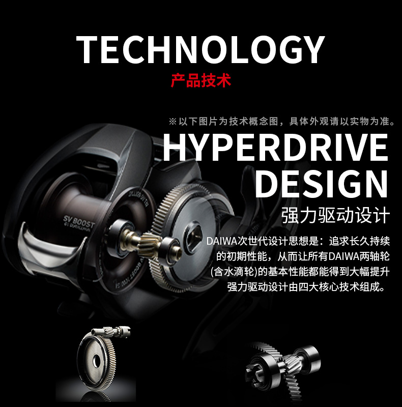 水滴轮所需功能的集成,更强韧、更平滑、更持久的回旋。动力单元从传动齿轮不断向 小号齿轮输送能量,外壳能够从外部可靠地支撑驱动部,实现稳定而又安静的驱动力, 多功能各机横在各类情况下都能发挥作用。两轴卷线器的设计思想实现了无浪费、高 效率,实现了比以往系列产品的更强驱动体验。