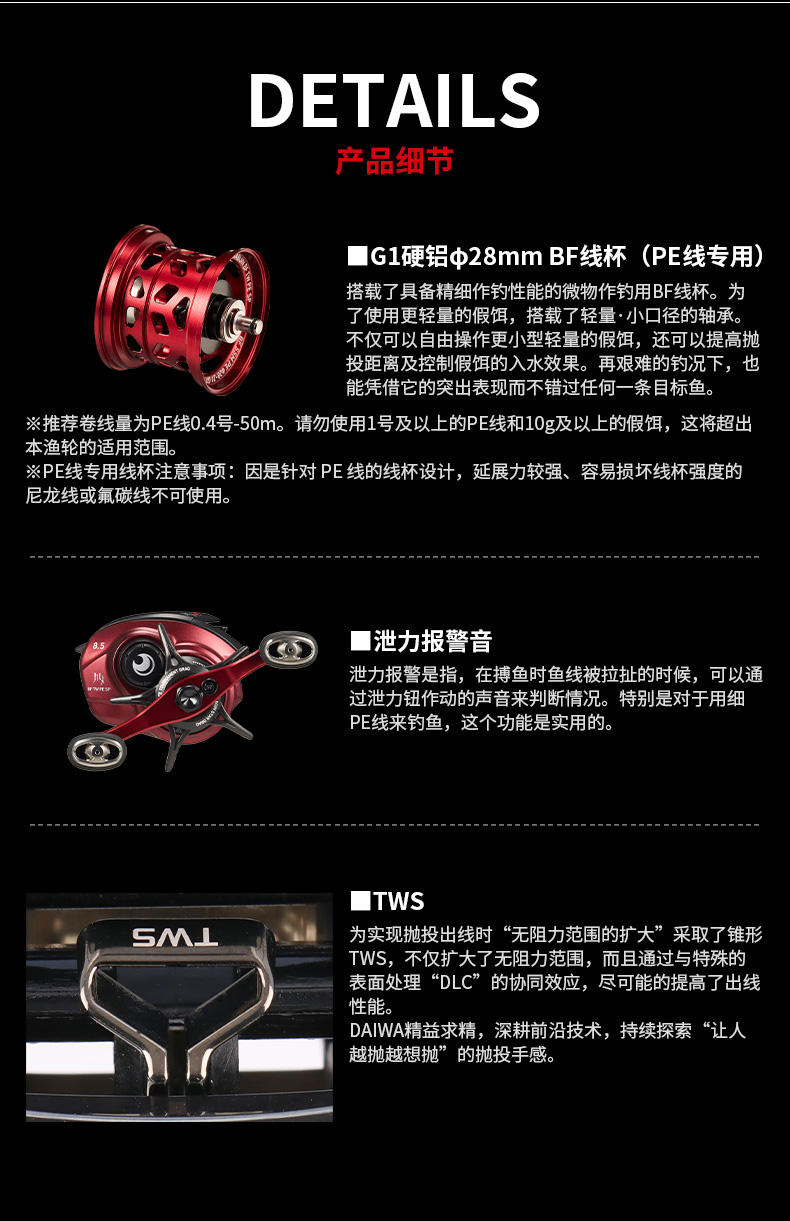 TWS可以大幅减少在线杯转速很高时产生的炸线问题,从而实现舒适的钓鱼体验。抛投距离远的同时,操控性也更好,假饵下落速度快且不易炸线。TWS提升了水滴轮的基本性能。