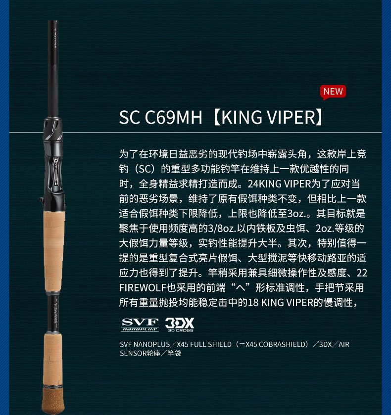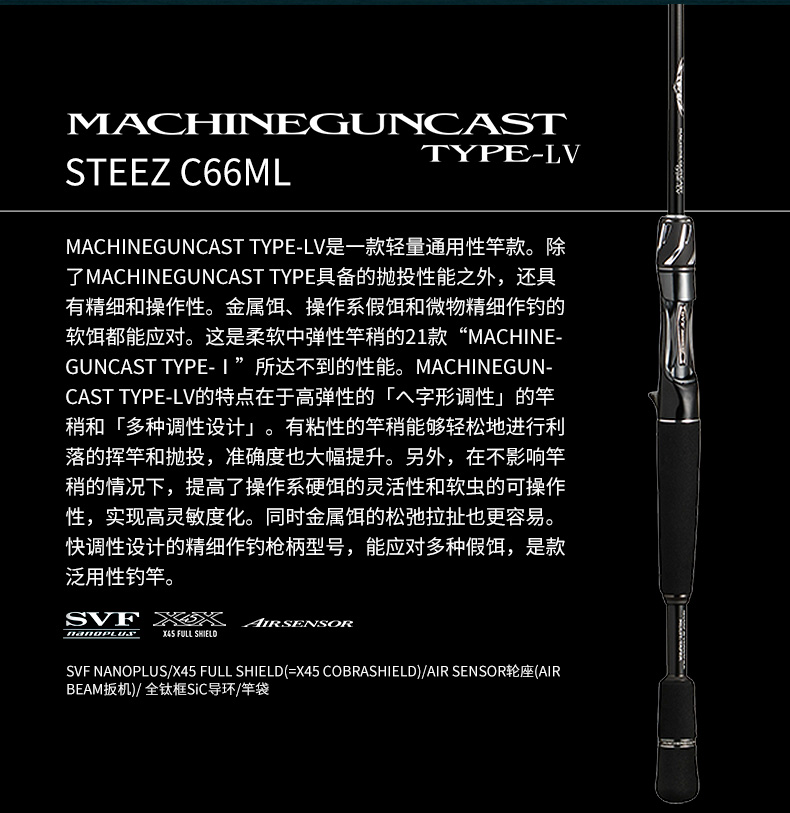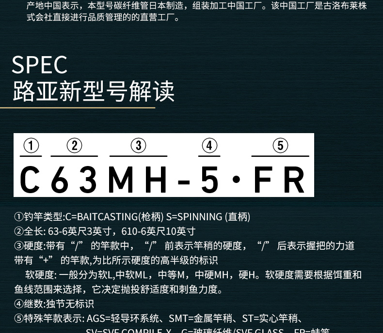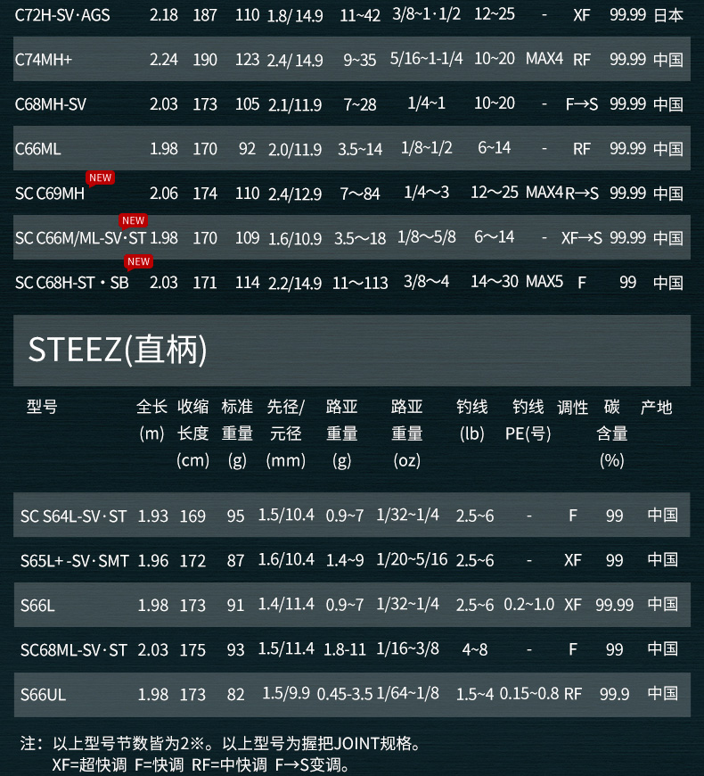 削减更多的树脂含量,相对应的加入了大量的石墨纤维,从而实现了强韧肉厚的竿身素材