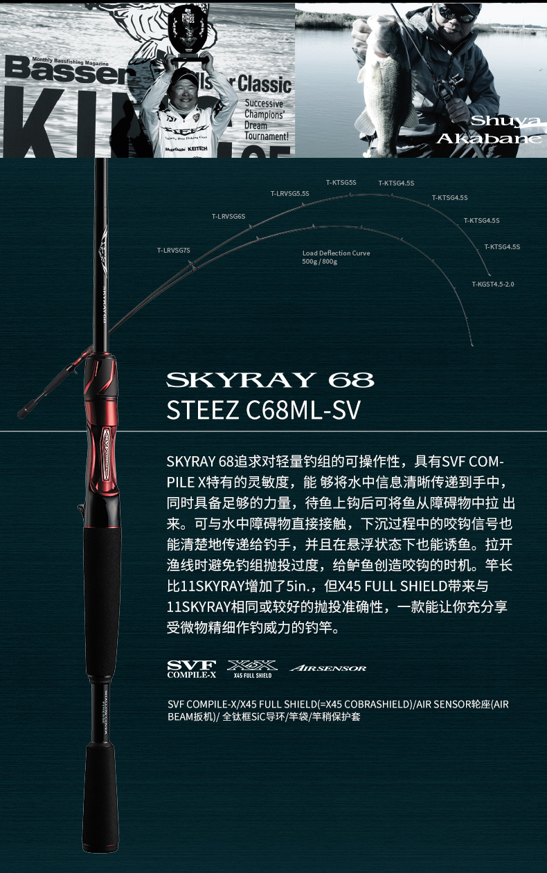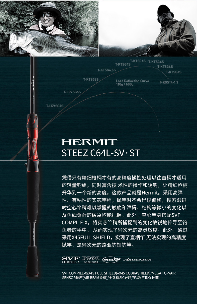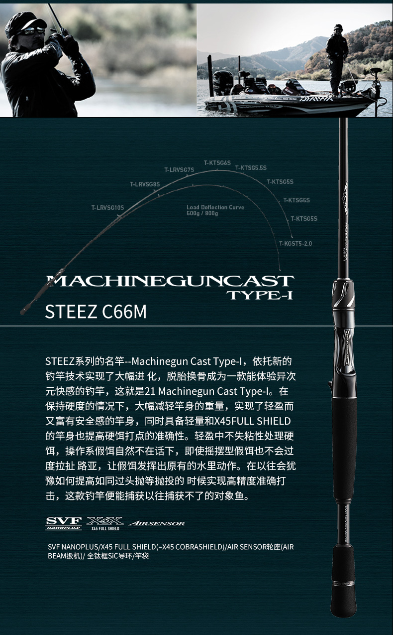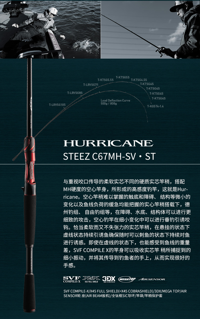 X45:扭转[45°]适合具有强度、操控性的很好的构造设计。在以往的构造上(对竿身0°、90°)包覆着DAIWA的BIAS CROSS(+-45°的斜行碳纤维等)不但能防止扭曲现象,使力量、操作性、灵敏度都得以提升。 X45 FULL SHIELD:针对抛竿、诱鱼、弓鱼、博鱼,X45 FULL SHIELD会排除掉在这些动作和操作中出现的扭曲现象。从容易产生扭曲的素材先端开始,用45°的斜行纤维从能体现效果的外层开始包裹,从而耐扭曲的刚性得到了很大的提升。