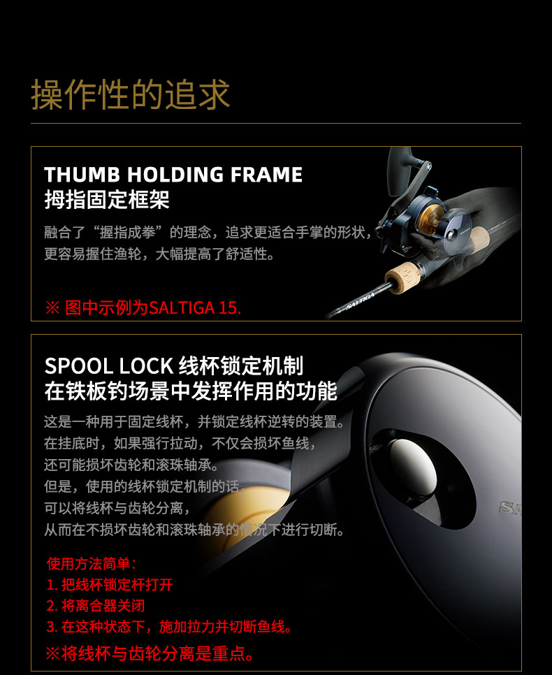 兼具高刚性和高精度的外壳系统,能够牢固地支撑内部结构,带来细腻的收线感和动力。使用金属材料制作关键的框架是先决条件,再加上与侧板和侧盖组合使用,使渔线轮更加经久耐用。