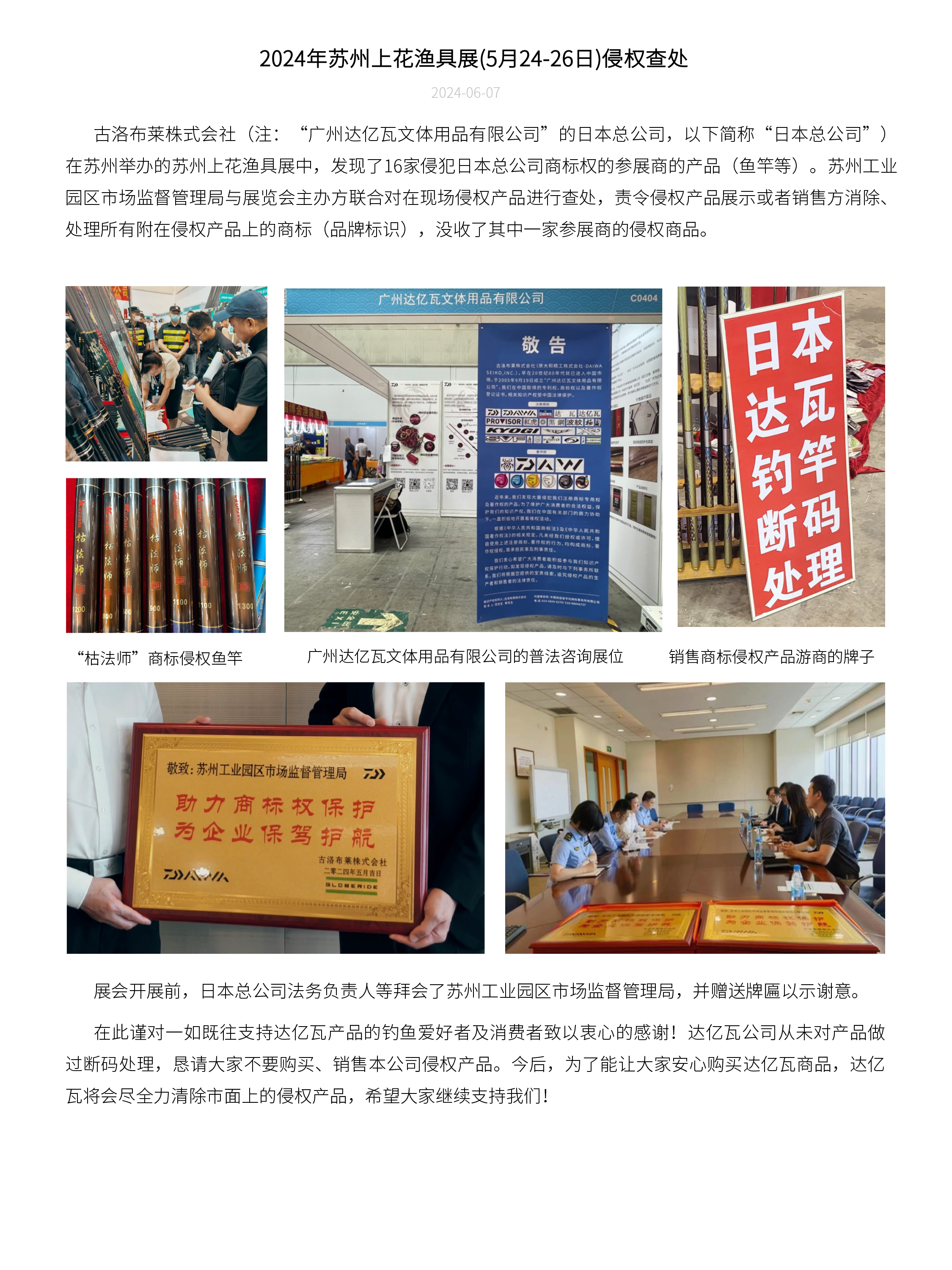 2024年苏州上花渔具展(5月24-26日)侵权查处