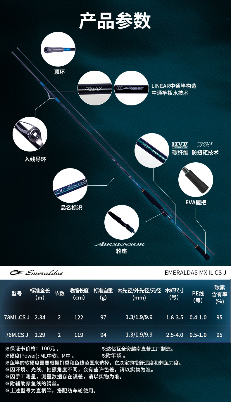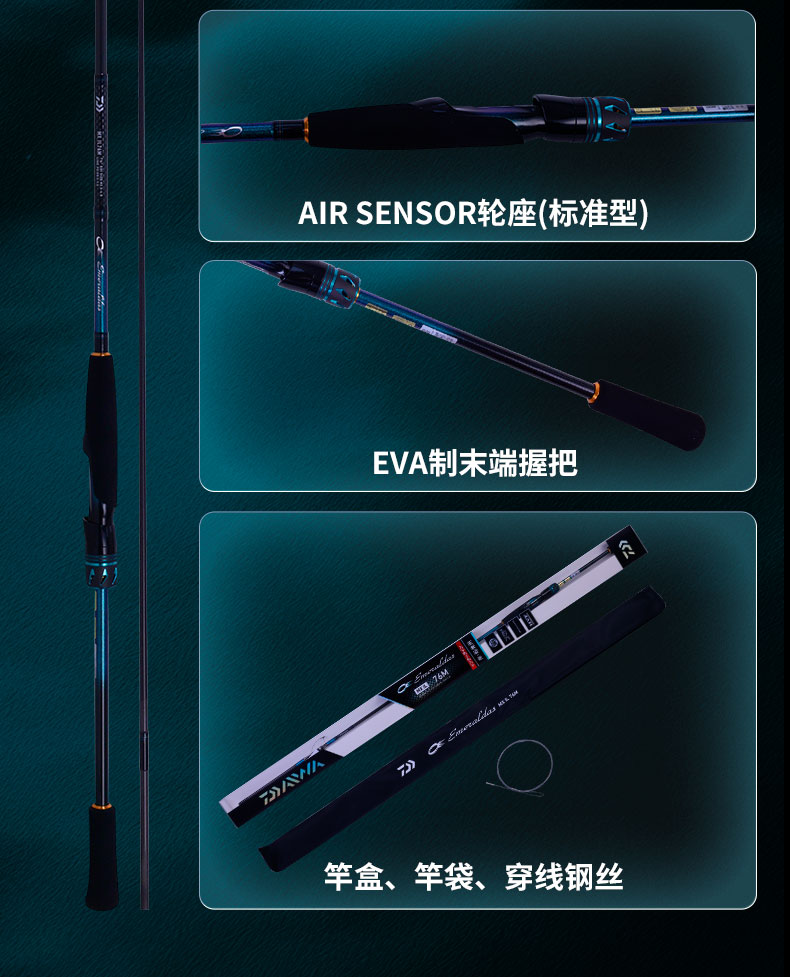 以东丽株式会社 NANOALLOY TECHNOLOGY 的材料,配合纳米等级特殊混合技术,让固定碳纤的数种接着树脂实现高性能、高机化。DAIWA 透过独自的设计手法与制造手法,针对每个机种进行提升,使竿节发挥更高强度并减轻重量。