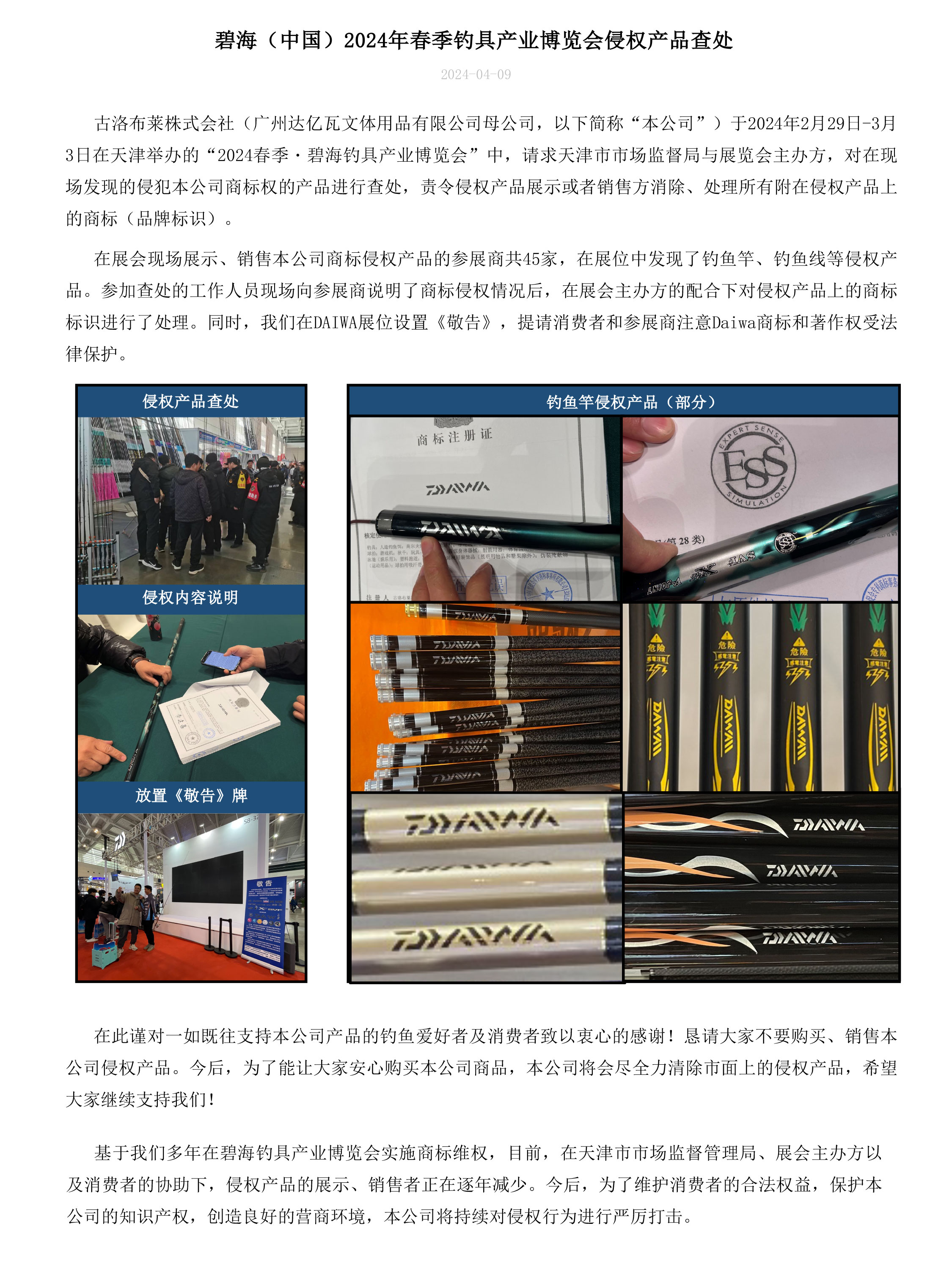 碧海(中国)2024年春季钓具产业博览会侵权产品查处