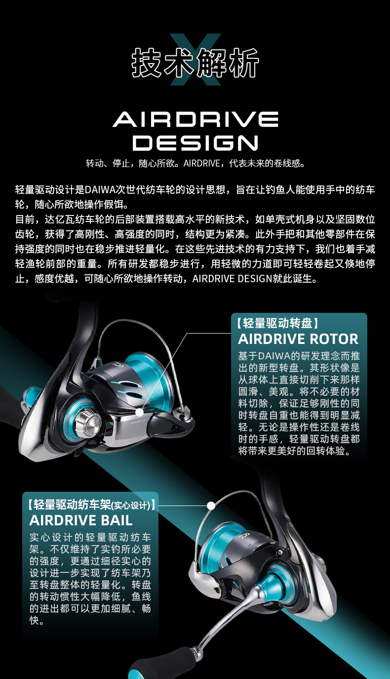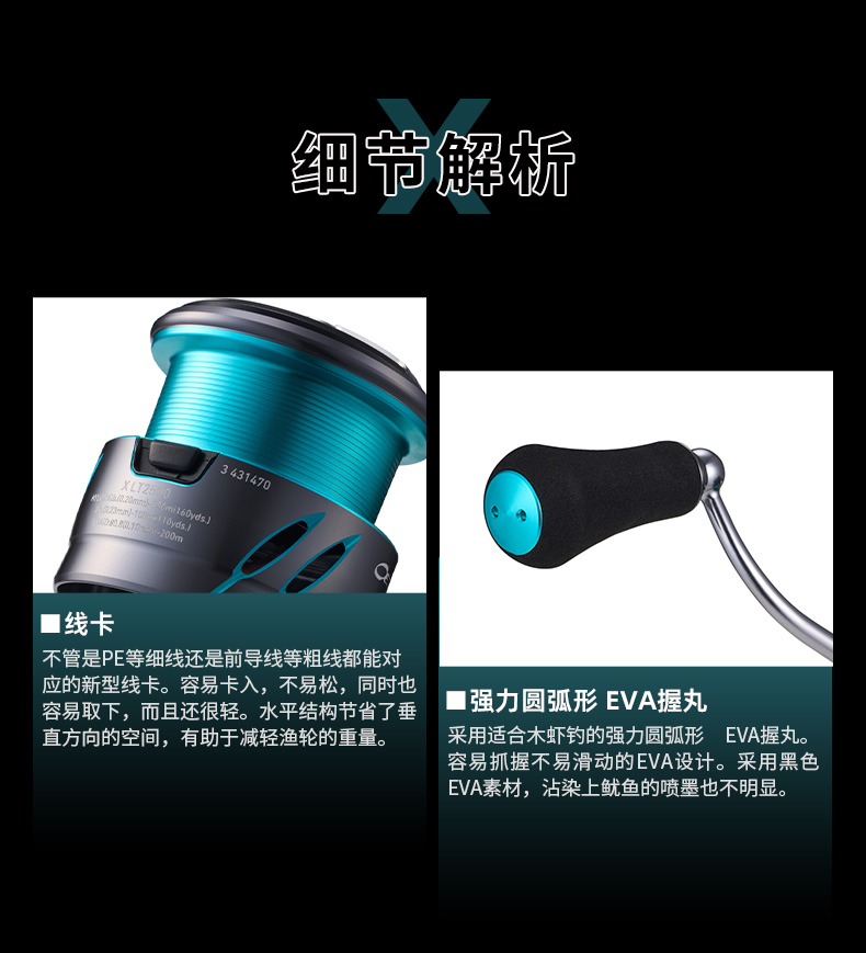 采用更护线的光滑表面设计,作钓时渔线的诸多问题得到了大幅减少。同时由于采用了中空的结构,在保持原有轻量化的同时,大幅提高了纺车架的强度。