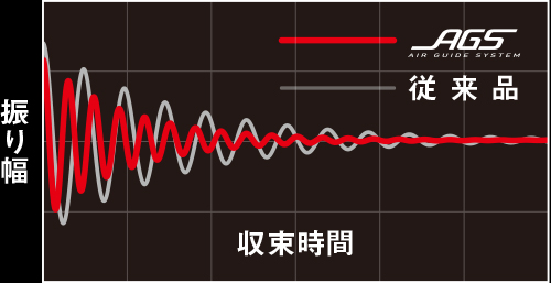 采用AGS的钓竿的竿稍部分在挥竿后的振动结束时间比以往其他产品都要早。成功实现出线时无晃动无压力的准确抛投和飞行距离。