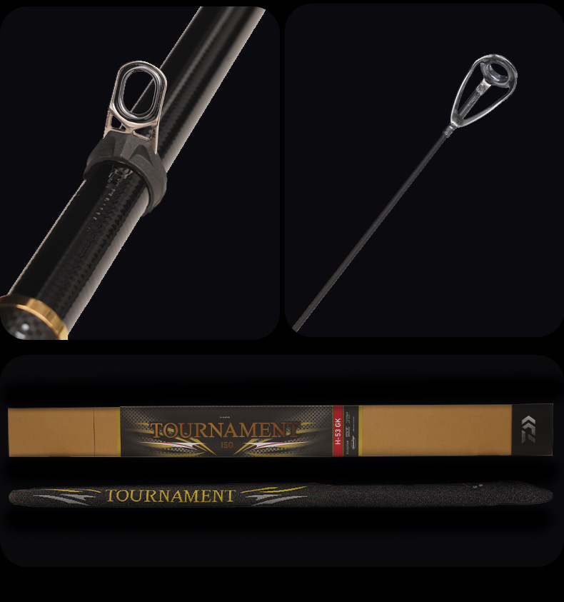 MEGA TOP 是纤维与树脂均一地分散排列的实心碳纤维,无论从哪个方向都能清晰地看见其曲度。比普通的实心碳纤维强度更高。因此可以做到细径的柔软及锥形的竿尾。发挥出碳纤维材质的传导性,大幅提高竿尾的视觉感度。