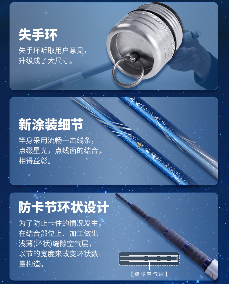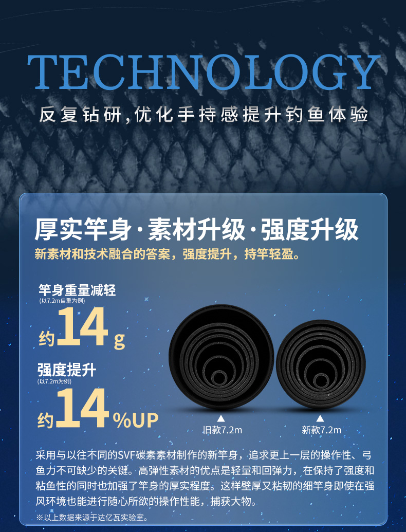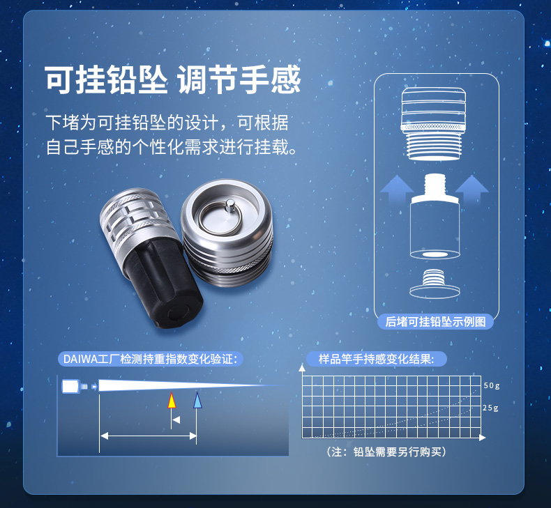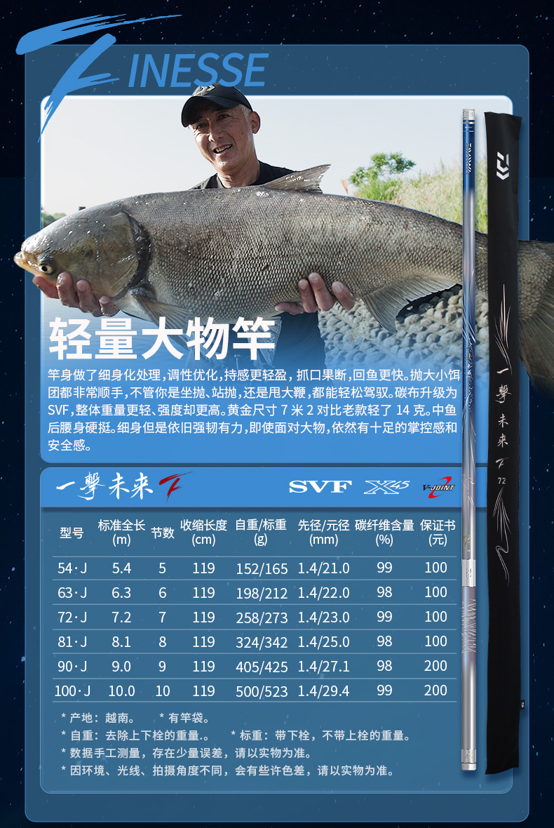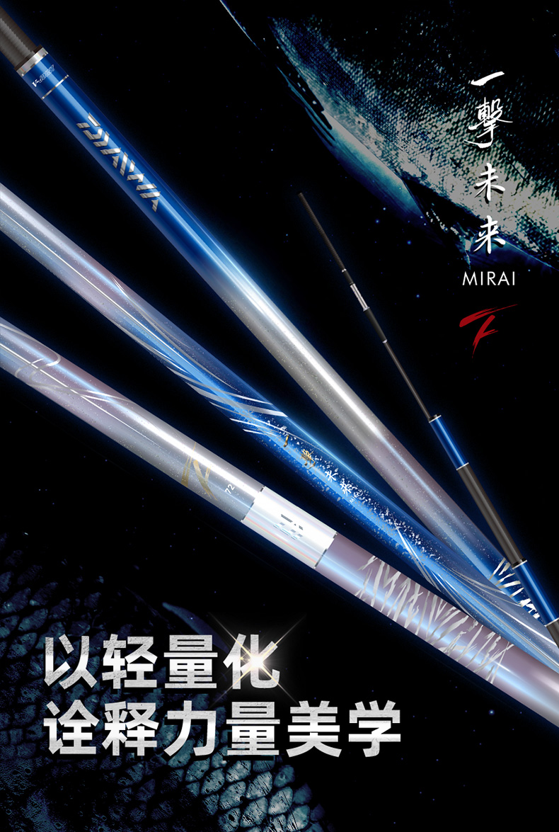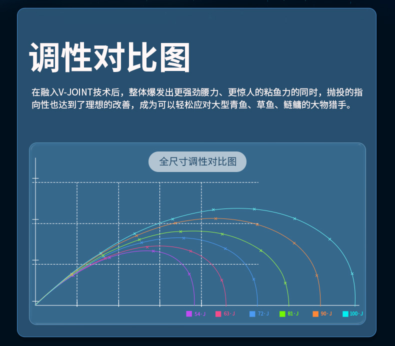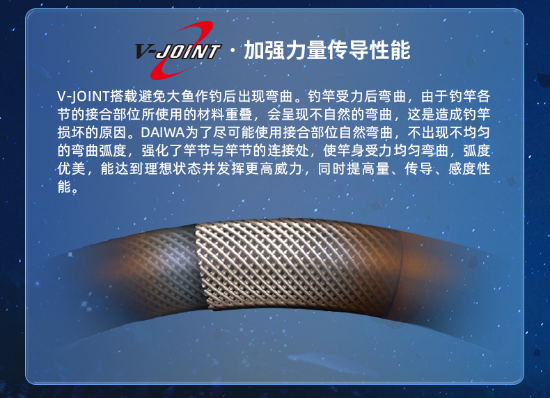 V-JOINT:具线条美感弧度能达到理想的状态及发挥更高威力。在竿节的部位使用DAIWA自身的BIAS构造。实现结合部的理想弧度,同时提高力量/传导/感度性能。 V-JOINTα:使用含nano+的高强度材质及DAIWA自身高精准度钓竿设计制造技术, 使V-JOINT更加强韧、轻盈、美观。
