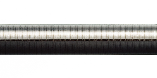 面对竿稍方向,环向为碳纤维卷付处理,长纵则是通过缠绕单一方向的UD玻璃纤维卷付,兼具玻璃的柔软性和粘性,并同时实现了轻量的设计。