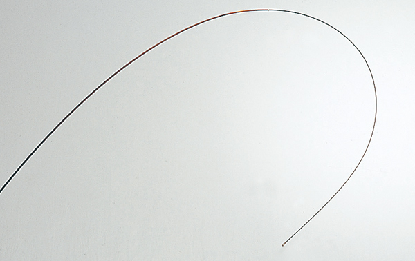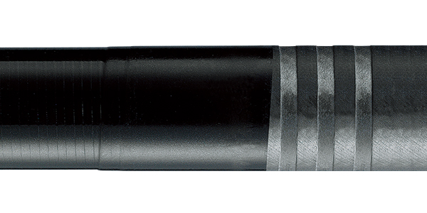MEGA TOP 是纤维与树脂均一地分散排列的实心碳纤维,无论从哪个方向都能清晰地看见其曲度。比普通的实心碳纤维强度更高。因此可以做到细径的柔软及锥形的竿尾。发挥出碳纤维材质的传导性,大幅提高竿尾的视觉感度。