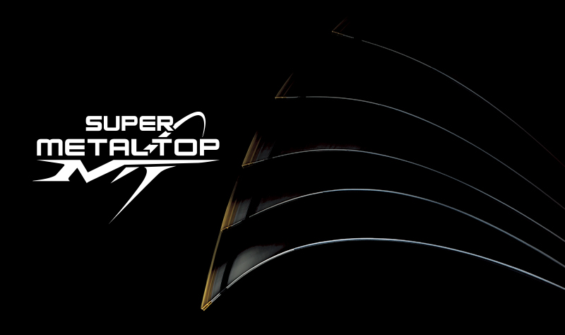 竿尾使用高弹性钛合金的 SUPER METAL TOP。高弹性钛合金的SUPERMETALTOP具柔韧且高感度。同时也是视觉(看的感度),连触觉(握的感度)也能判断出鱼讯的新世代竿尾。将柔软且振动传递强的高弹性钛合金和碳纤维及玻璃素材混合,配合在各式各样的钓竿上实现出适合的调子及轻量化。